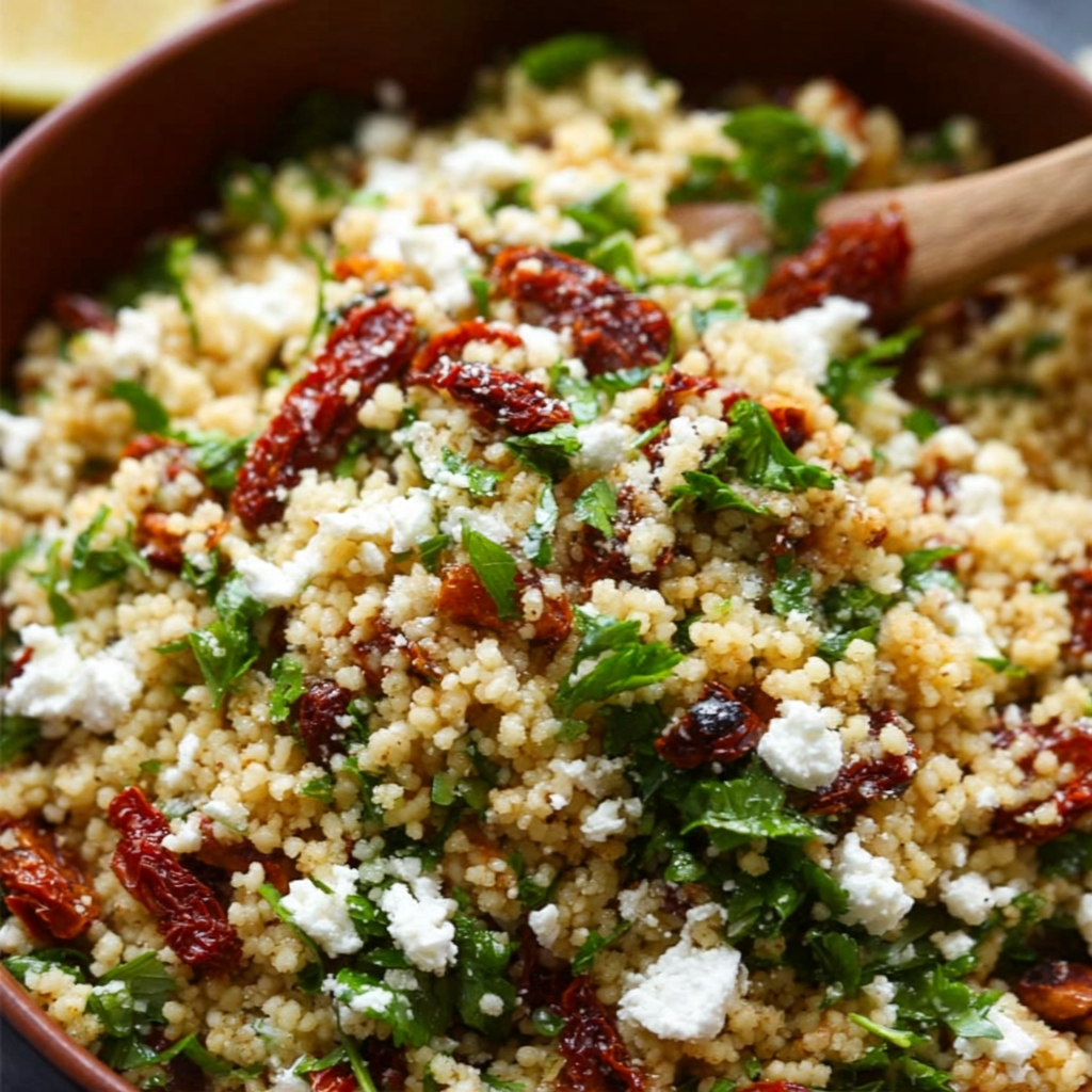 You are here: Home / Salade / 12-Minute Couscous Salad with Sun-Dried Tomato and Feta