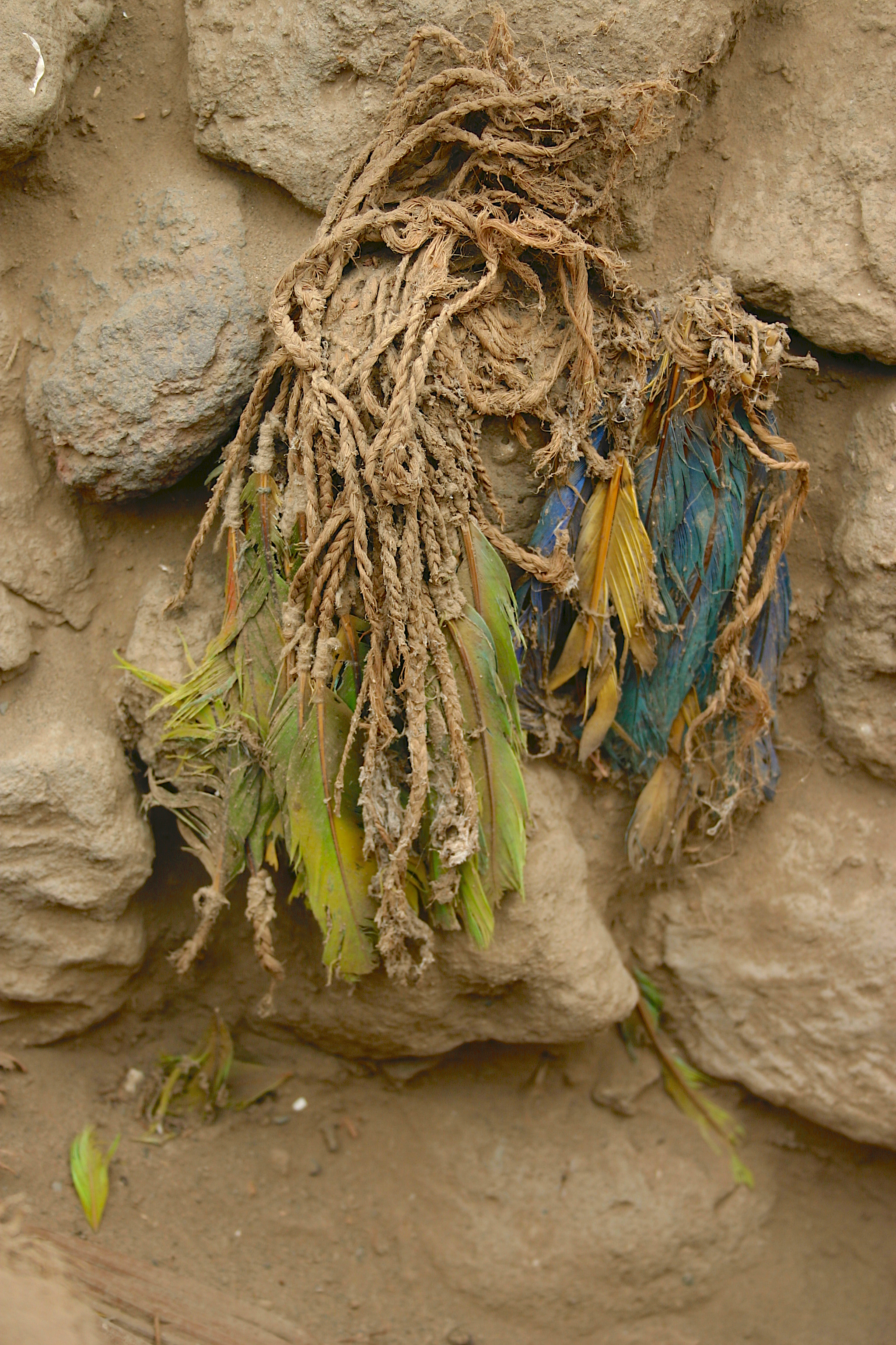 Most parrot species molt and regrow feathers about once a year, though it can vary by a few months, so these birds must have spent at least six to 18 months in Ychsma territory before being plucked for someone’s funerary headdress. And that means that someone in the Amazon was trading with the Yschma, handing over not just bundles of feathers but live parrots.
