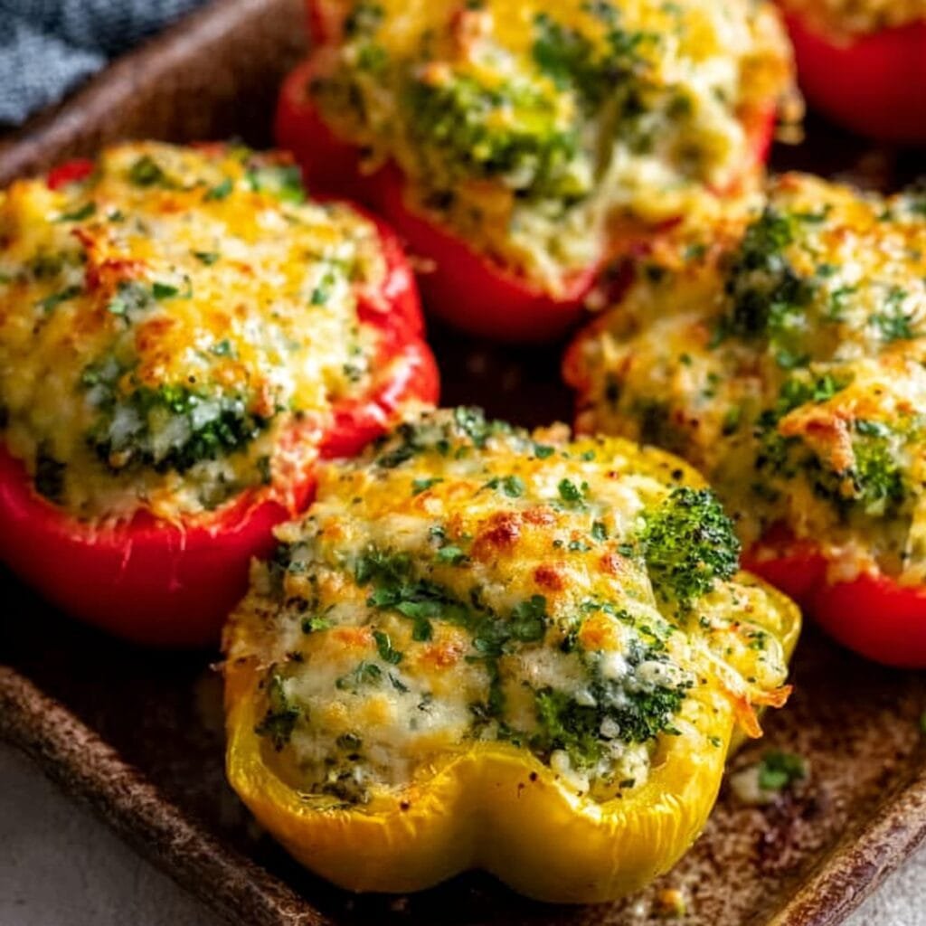 These Cheesy Broccoli Rice Stuffed Peppers are the definition of cozy, feel-good food. Tender bell peppers are filled with creamy, cheesy rice, smoky green chiles, and bite-sized broccoli florets, then baked until perfectly melty and golden. Every bite is comforting, flavorful, and surprisingly wholesome—making this dish a win for both kids and adults alike.