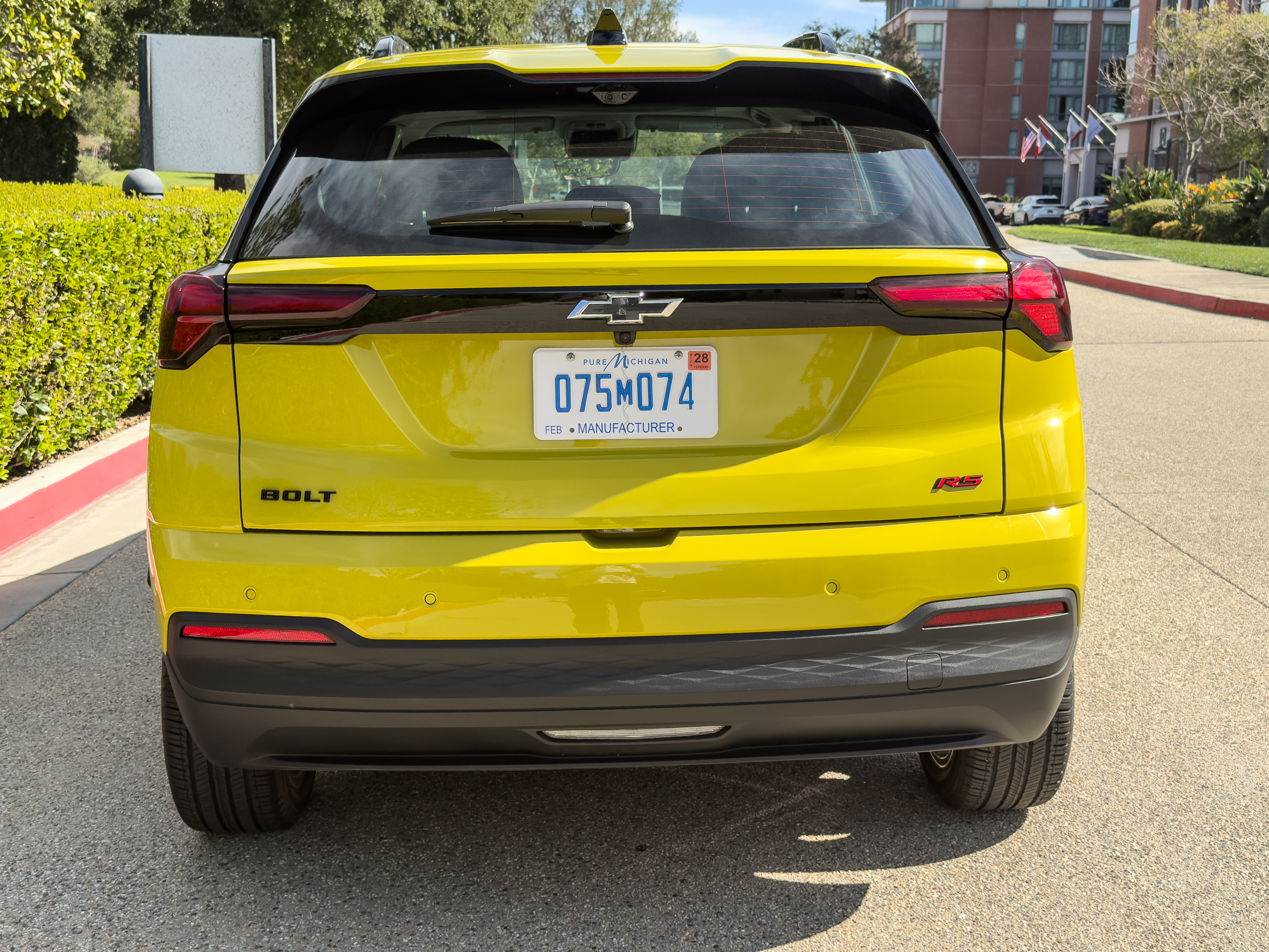 Although the new $32,995 RS trim has a sportier appearance inside and out than the $28,995 LT, both trims use identical suspension tuning. The ride is more than a little bouncy over the expansion gaps of LA’s highways, but a look at previous reviews reminds me that old Bolts also did this. The effect was much less noticeable on the back roads, where the car proved nimble if not exactly captivating to drive: I would very much like to try one on performance tires. The range would suffer a little, but cornering grip would be much improved. That said, the low-rolling resistance tires have more grip and are less likely to break traction than, say, the Toyota bZ we just reviewed.