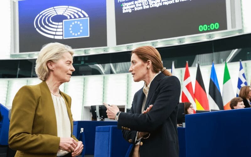 Photo: Roberta Metsola, EP President, and Ursula von der Leyen chat during yesterday’s Plenary Session of the European Parliament – © European Union 2026 – Source : EP