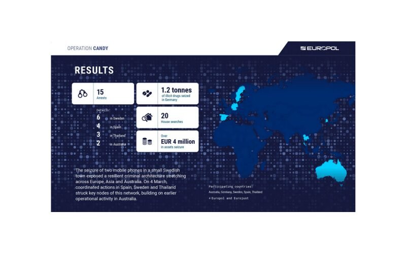 On 4 March, coordinated raids in Spain, Sweden and Thailand targeted key figures linked to the network. Around 20 searches were carried out, leading to 13 arrests and the seizure of criminal assets worth about €4 million. Combined with earlier arrests in Australia, the operation has resulted in 15 suspects detained.
