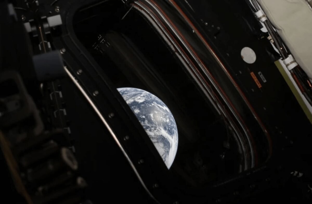 Commander Reid Wiseman snapped the now-viral shots roughly 36 hours into the mission — one capturing a curved slice of Earth peeking through Orion’s window, the other showing the full planet glowing with swirling clouds and even a faint green aurora shimmering across its surface.