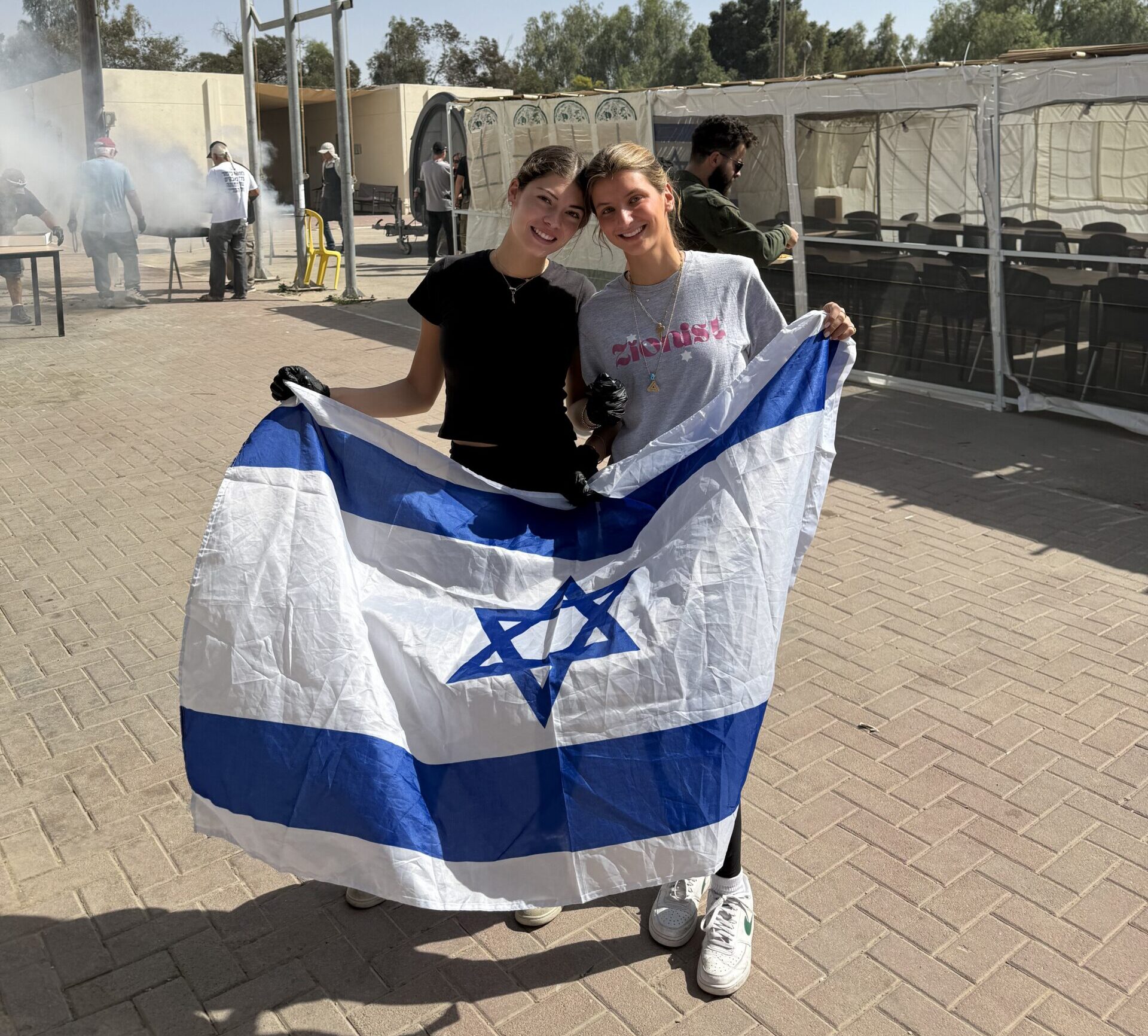Lily Feinstein and Noa Haron, co-founders of Mini Mitzvahs, at an army base in the south of Israel, 2025. (Courtesy Lily Feinstein)
