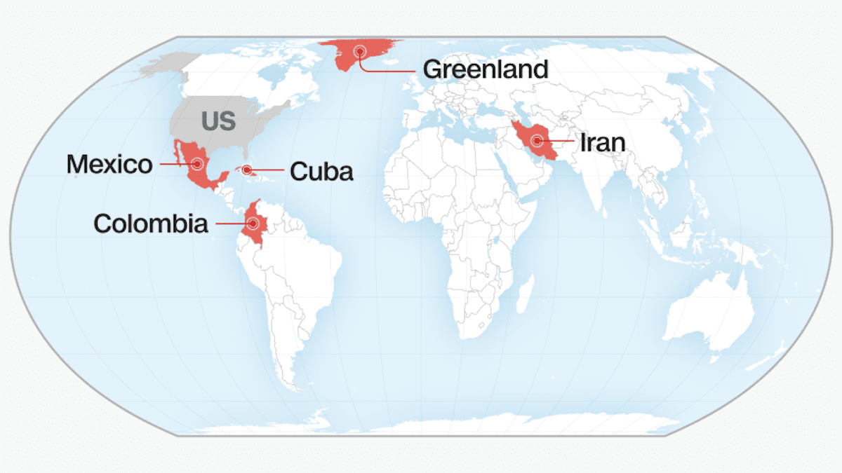 Trump, who has bombed more countries than any other president in modern US history despite campaigning on “no new wars,” did not name any potential targets of the American military’s “next conquest” in his Wednesday night post. But the president has lobbed threats against Cuba and Greenland repeatedly in recent months, threatening to seize both island nations by force.
